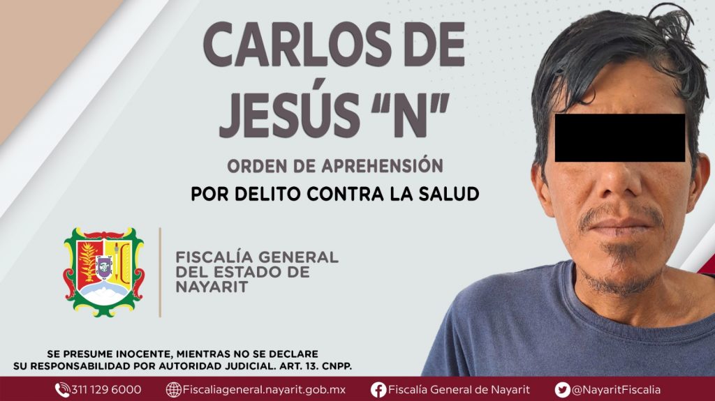 Elementos de la Agencia de Investigación Criminal de Nayarit ejecutaron una orden de aprehensión contra Carlos de Jesús “N”, por su presunta participación en hechos que según apreciación de la ley encuadran el delito contra la salud en su modalidad de narcomenudeo -en la hipótesis de psicotrópicos (metanfetaminas)-, ilícito cometido en contra de la sociedad.