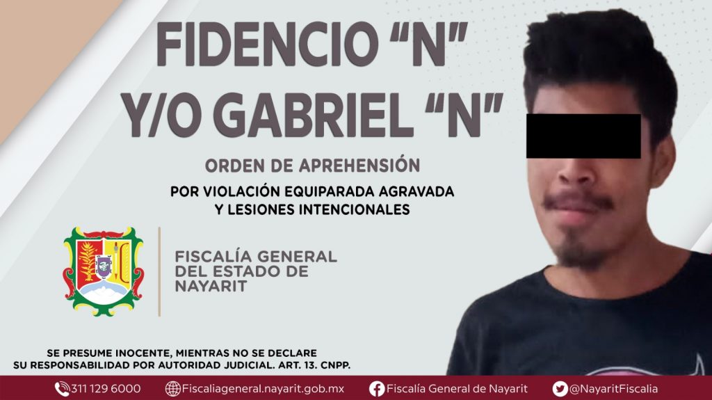 La Fiscalía General del Estado a través de la Agencia de Investigación Criminal dio cumplimiento a una orden de aprehensión en la localidad Francisco I. Madero, municipio de Tepic contra Fidencio “N” y/o Gabriel “N”, por su presunta participación en hechos que según apreciación de la ley configuran los delitos de violación equiparada agravada y lesiones intencionales, cometidos en agravio de una adolescente de identidad reservada.