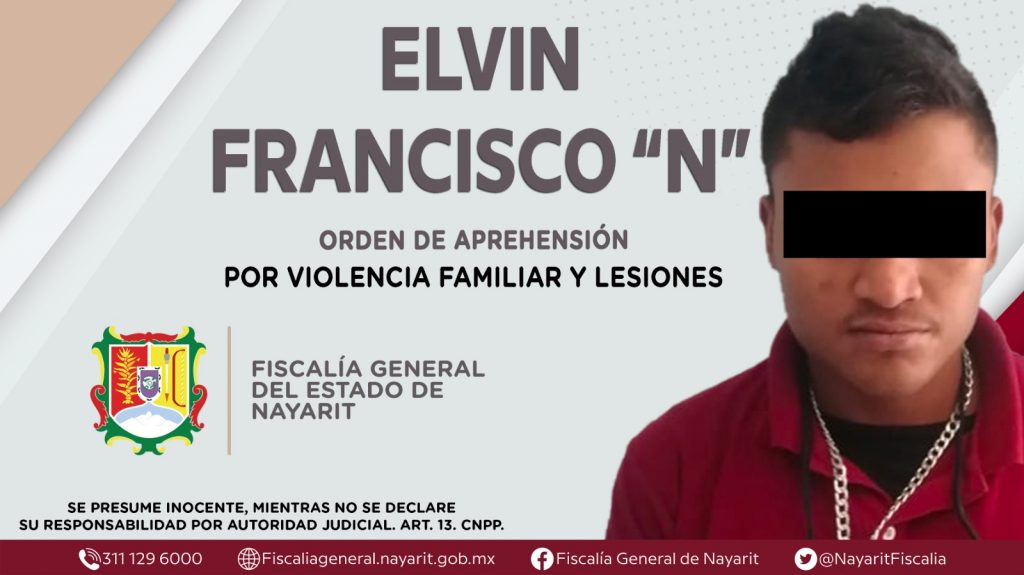 La Fiscalía General de Nayarit a través de la Agencia de Investigación Criminal dio cumplimiento a una orden de aprehensión en la ciudad de Xalisco contra Elvin Francisco “N”, por su presunta participación en hechos que según apreciación de la ley encuadran los delitos de violencia familiar equiparada y lesiones, cometido en agravio de dos personas menores de dieciocho años de identidades reservadas.