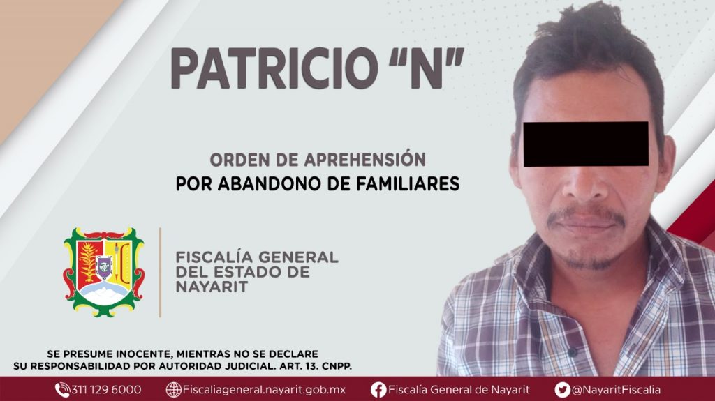 En el poblado Caleras de Cofrado, municipio de Tepic, elementos de la Agencia de Investigación Criminal dieron cumplimiento a una orden de aprehensión que se obsequió contra Patricio “N”, por su probable participación en hechos que la ley califica como delito de abandono de familiares, cometido en contra de una persona de sexo femenino cuya identidad se reserva.