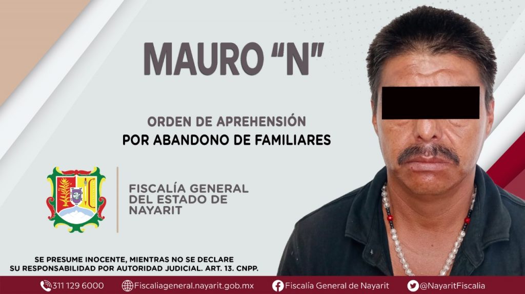 Elementos de la Agencia de Investigación Criminal de Nayarit ejecutaron una orden de aprehensión en el poblado La Labor, municipio de Santa María del Oro contra Mauro “N”, originario y vecino de la misma localidad donde fue detenido, por su presunta participación en hechos que según apreciación de la ley encuadran el delito de abandono de familiares, el cual fue cometido en agravio de dos menores de edad de identidades reservadas.