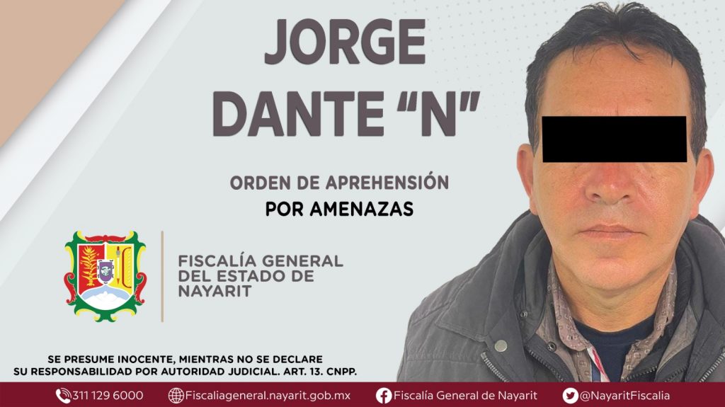 Elementos de la Agencia de Investigación Criminal de Nayarit ejecutaron una orden de aprehensión en la ciudad de Tepic contra Jorge Dante “N”, por su presunta participación en hechos que según apreciación de la ley configuran el delito de amenazas, cometido contra una persona de sexo femenino de identidad reservada.