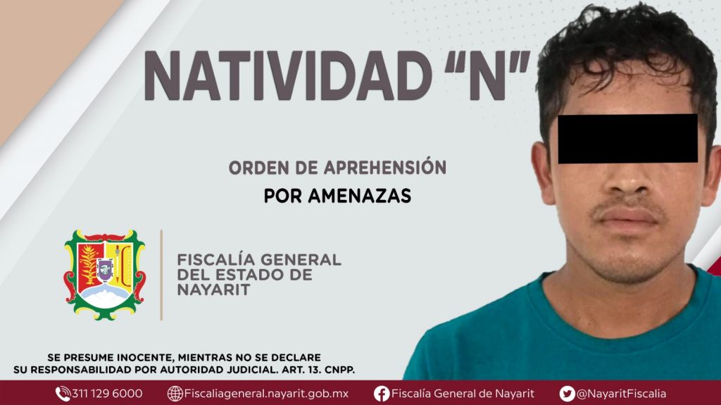 La Fiscalía General del Estado a través de la Agencia de Investigación Criminal dio cumplimiento a una orden de aprehensión en la ciudad de Tepic contra Natividad “N”, por su presunta participación en hechos que según apreciación de la ley configuran el delito de amenazas, cometido en agravio de una mujer de identidad reservada.