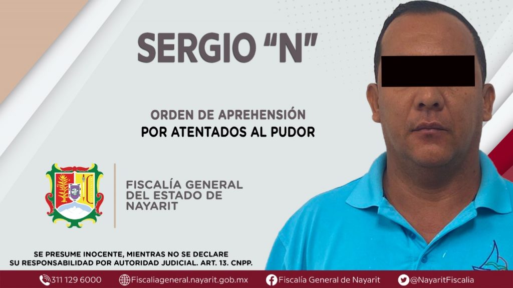 En el municipio de Bahía de Banderas, elementos de la Agencia de Investigación Criminal dieron cumplimiento a una orden de aprehensión que se obsequió contra Sergio “N”, por su probable participación en hechos que la ley califica como delito de atentados al pudor, cometido en contra de un menor de edad cuya identidad se reserva.