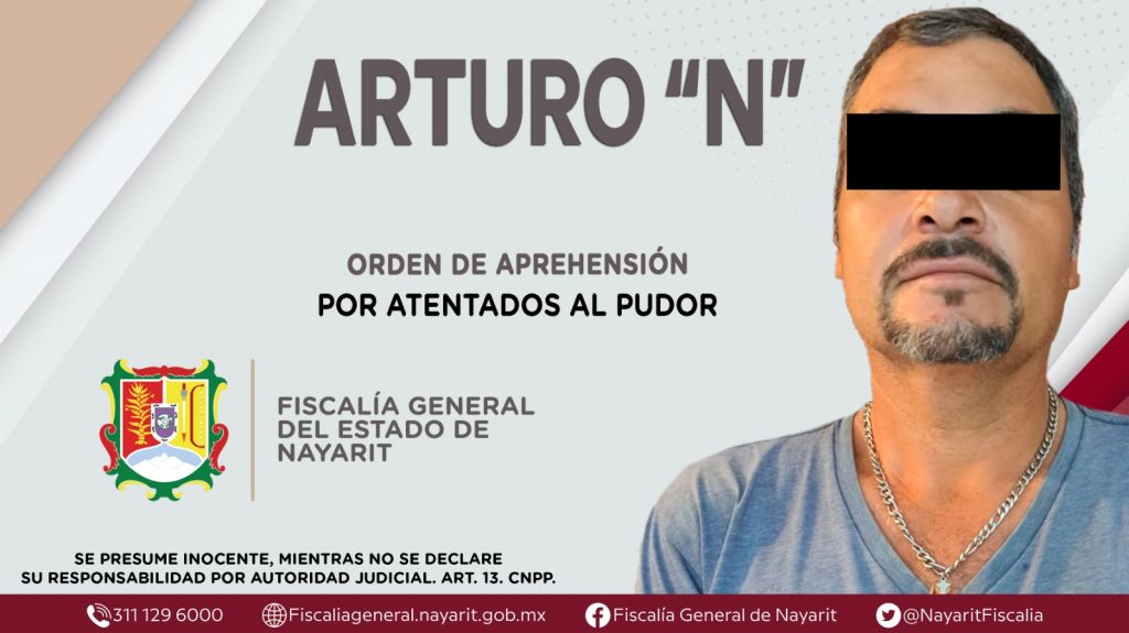 La Fiscalía General de Nayarit a través de la Agencia de Investigación Criminal dio cumplimiento a una orden de aprehensión en el municipio de Ahuacatlán contra Arturo “N”, por su presunta participación en hechos que según apreciación de la ley encuadran el delito de atentados al pudor, cometido en agravio de una persona menor de dieciocho años de identidad reservada.