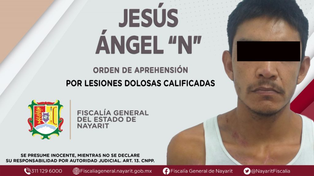 Fiscalía General de Nayarit a través de la Agencia de Investigación Criminal, ejecutó una orden de aprehensión que se obsequió contra Jesús Ángel “N”, debido a su probable participación en hechos que la ley califica como delito de lesiones dolosas calificadas, cometido contra un menor de edad cuya identidad es reservada.