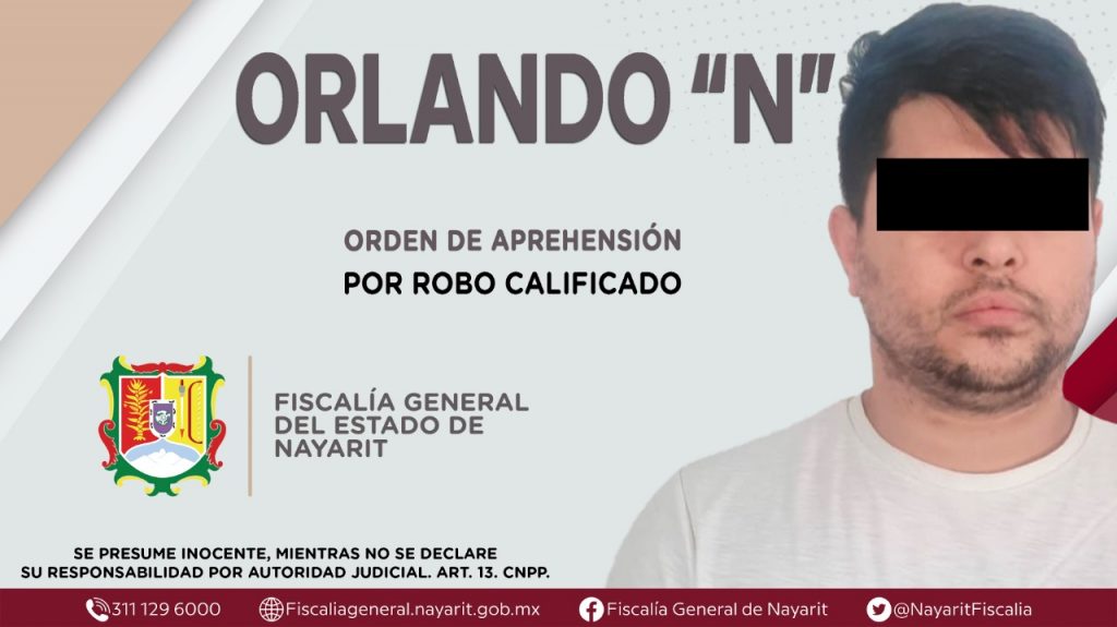 Elementos de la Agencia de Investigación Criminal dieron cumplimiento a una orden de aprehensión en la ciudad de Tepic contra Orlando “N”, por su presunta participación en hechos que bajo la apreciación de la ley configuran el delito de robo calificado, cometido en agravio de una persona de sexo masculino de identidad reservada.