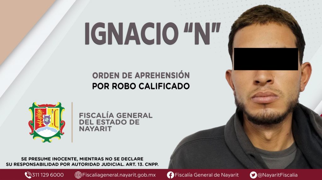 Elementos de la Agencia de Investigación Criminal de Nayarit ejecutaron una orden de aprehensión en la ciudad de Tepic contra Ignacio “N”, por su presunta participación en hechos que según apreciación de la ley configuran el delito de robo calificado, cometido en perjuicio de una mujer de identidad reservada.