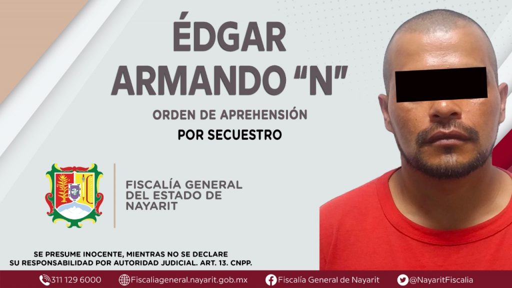 Elementos de la Agencia de Investigación Criminal dieron cumplimiento a una orden de aprehensión en la ciudad de Tepic contra Édgar Armando “N”, por su probable participación en hechos que la ley juzga como delito de secuestro, cometido en agravio de una persona de sexo masculino cuya identidad se reserva.