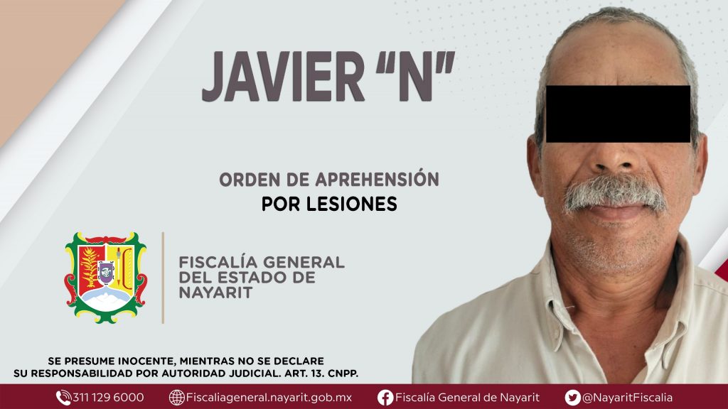 La Fiscalía General del Estado a través de la Agencia de Investigación Criminal dio cumplimiento a una orden de aprehensión en la ciudad de Tepic contra Javier “N”, por su presunta participación en hechos que según apreciación de la ley encuadran el delito de lesiones, cometido en contra de una persona de sexo masculino de identidad reservada.
