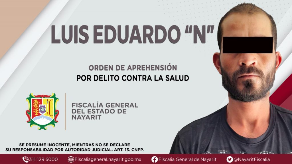 La Fiscalía General de Nayarit a través de la Agencia de Investigación Criminal ejecutó una orden de aprehensión en la ciudad de Tepic contra Luis Eduardo “N”, quien es originario y vecino de la capital nayarita, por su presunta participación en hechos que según apreciación de la ley encuadran el delito contra la salud en su modalidad de narcomenudeo -en su hipótesis de posesión de psicotrópicos (metanfetaminas)-, cometido en agravio de la sociedad.