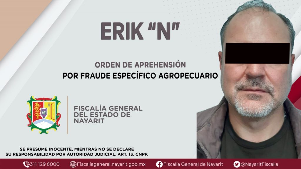 En el interior del Centro de Readaptación Social “Venustiano Carranza”, elementos de la Agencia de Investigación Criminal de Nayarit dieron cumplimiento a una orden de aprehensión que se obsequió contra Erik “N”, por su probable participación en hechos que la ley califica como delito de fraude específico agropecuario, cometido en menoscabo de una persona de sexo masculino de identidad reservada.