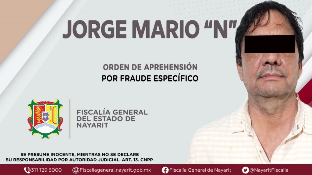 En el municipio de Los Mochis, Sinaloa y con la colaboración de la Fiscalía General de esa entidad, elementos de la Agencia de Investigación Criminal de Nayarit dieron cumplimiento a una orden de aprehensión que se obsequió contra Jorge Mario “N”, por su probable participación en hechos que la ley califica como delito de fraude específico, cometido en perjuicio de la persona moral denominada FRUVER, S. A. de C. V.