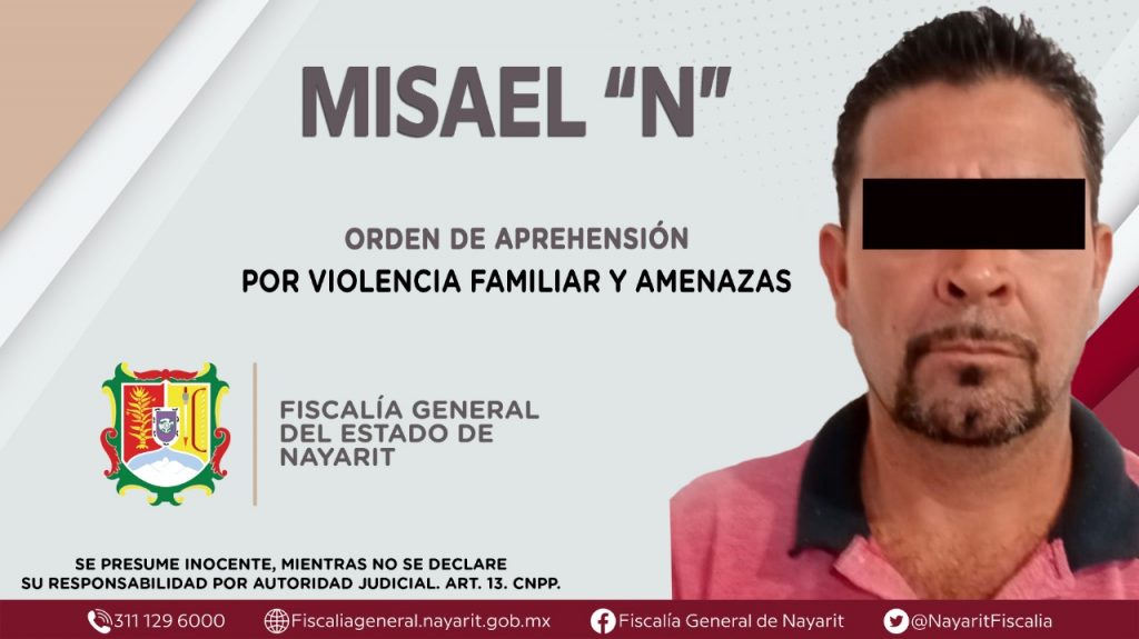 Elementos de la Agencia de Investigación Criminal cumplimentaron una orden de aprehensión en el poblado La Labor, municipio de Santa María del Oro contra Misael “N”, por su presuntiva responsabilidad penal en hechos que la ley califica como delitos de violencia familiar y amenazas, ilícitos cometidos en agravio de una persona de sexo femenino cuya identidad se reserva.