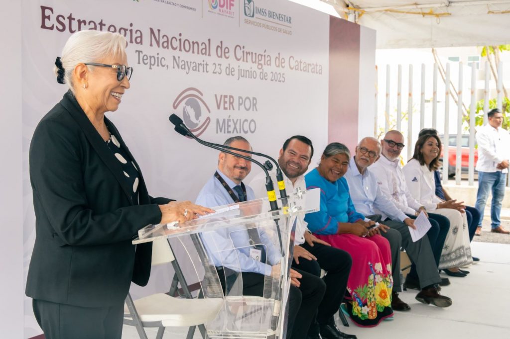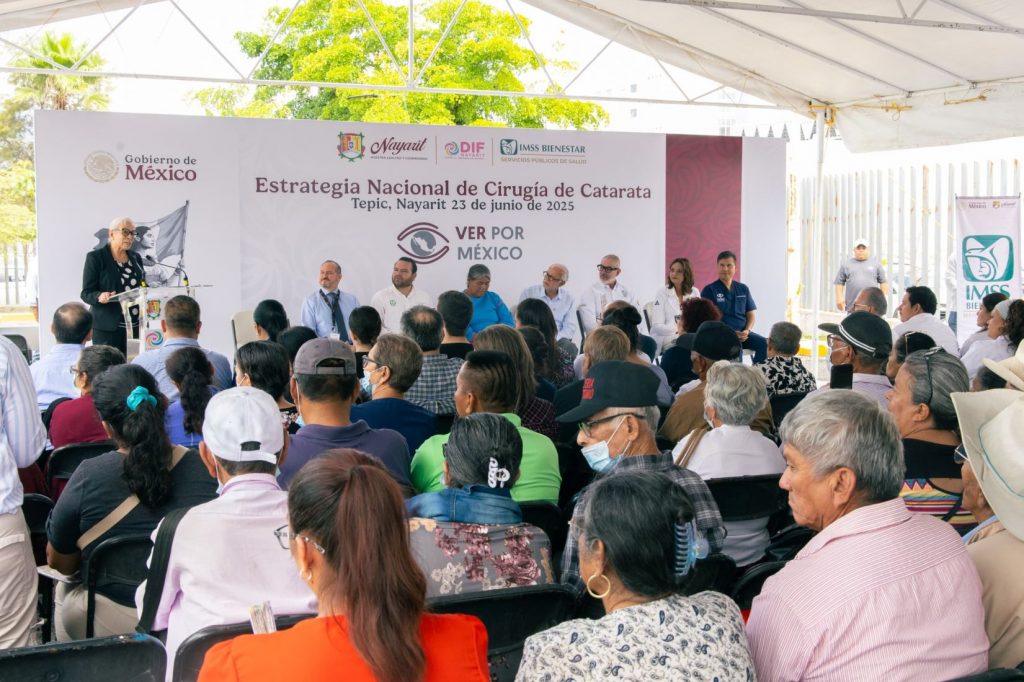 Con el compromiso de mejorar la salud visual de las personas mayores de 60 años y transformar sus vidas, el gobernador del estado, Miguel Ángel Navarro Quintero, y su esposa, la presidenta del Sistema DIF Nayarit, doctora Beatriz Estrada Martínez, encabezaron el arranque oficial en la entidad de la estrategia nacional “Ver por México”, impulsada por la presidenta de México, Claudia Sheinbaum.