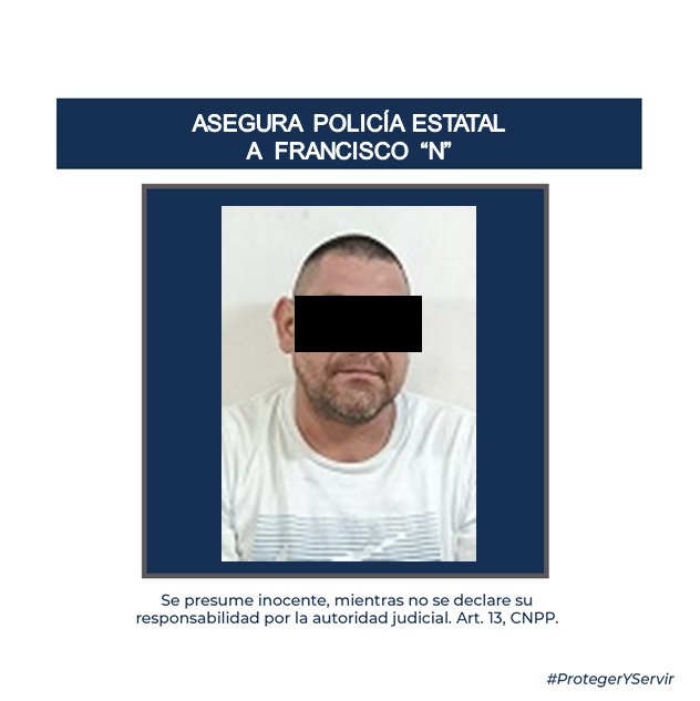 1.- Francisco “N” “N”, de 38 años, en el fraccionamiento Villas de la Cantera, dando cumplimiento a la orden de aprehensión, por su presunta participación en el hecho delictuoso de amenazas y daño a las cosas en agravio de una persona del sexo femenino de identidad reservada.