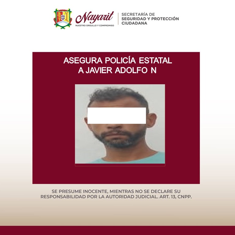 1.- Javier Adolfo “N” “N”, de 36 años, en la localidad de Nuevo Nayarit, municipio de Bahía de Banderas, asegurándole una bolsa de plástico conteniendo en su interior una sustancia cristalina y granulada con las características propias de la droga conocida como cristal.