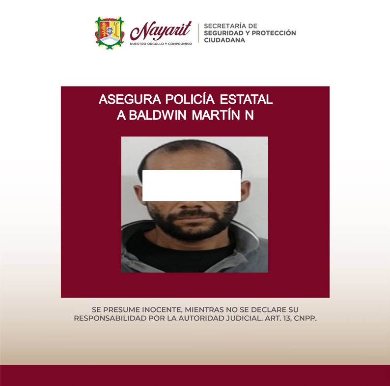 1.- Baldwin Martín “N” “N”, de 37 años, en la colonia Acayapan de Tepic, asegurándole una bolsa de plástico conteniendo en el interior un vegetal verde y seco con las características propias de la marihuana.