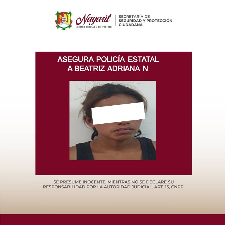 4.- Beatriz Adriana “N” “N”, de 28 años, en el fraccionamiento Valle Real de Tepic, asegurándole una bolsa de plástico conteniendo en su interior una sustancia cristalina y granulada con las características propias de la droga conocida como cristal.