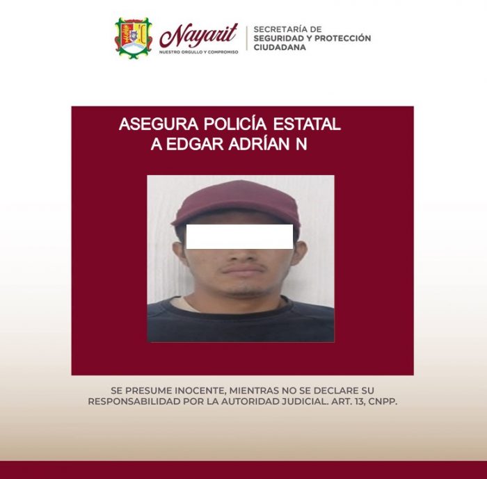 2.- Edgar Adrián “N” “N”, de 24 años, en el municipio de Bahía de Banderas, asegurándole una bolsa de plástico conteniendo en su interior una sustancia cristalina y granulada con las características propias de la droga conocida como cristal.
