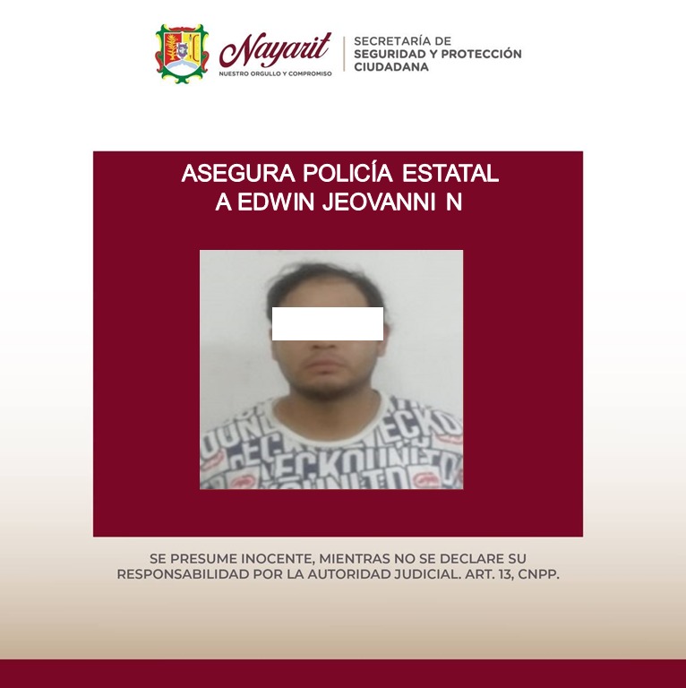 1.- Edwin Jeavanni “N” “N”, de 23 años, en la colonia Los Sauces, asegurándole una bolsa de plástico conteniendo en su interior una sustancia cristalina y granulada con las características propias de la droga conocida como cristal.