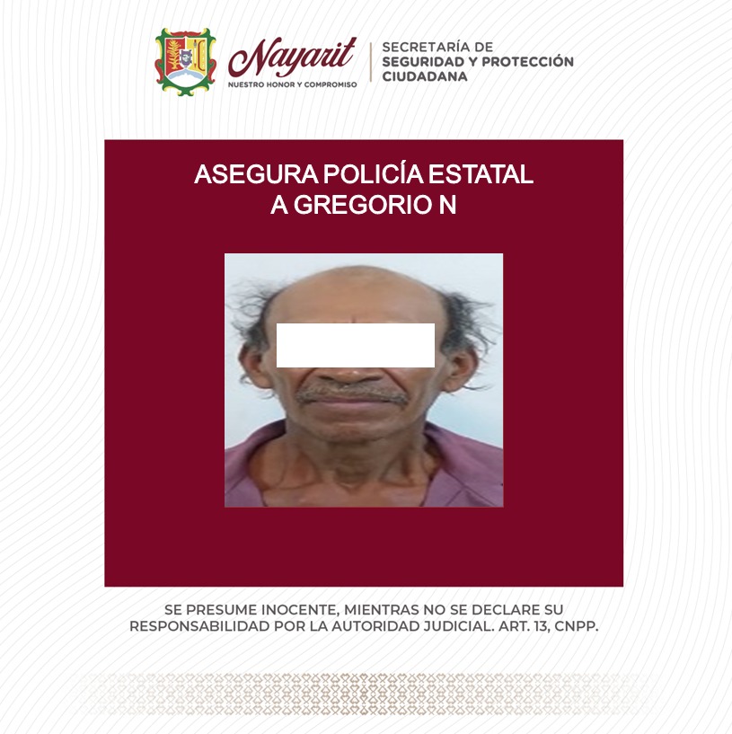 1.- Gregorio “N” “N”, de 59 años, en la zona centro, asegurándole una bolsa de plástico conteniendo en su interior una sustancia cristalina y granulada con las características propias de la droga conocida como cristal.