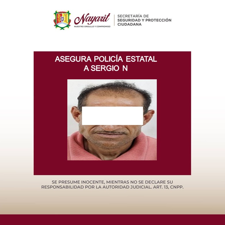 1.- Sergio “N” “N”, de 46 años, en la colonia Lomas del Valle de Tepic, asegurándole una bolsa de plástico conteniendo en su interior una sustancia cristalina y granulada con las características propias de la droga conocida como cristal.