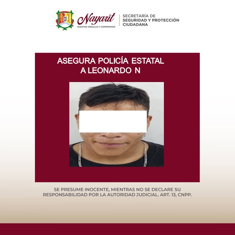 3.- Leonardo “N” “N”, de 18 años, en el fraccionamiento Senderos del Monte de Tepic, asegurándole una bolsa de plástico conteniendo en su interior una sustancia cristalina y granulada con las características propias de la droga conocida como cristal.