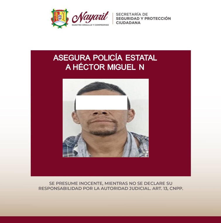 1.- Héctor Miguel “N” “N”, de 37 años, en el municipio de Xalisco, asegurándole una bolsa de plástico conteniendo en su interior una sustancia cristalina y granulada con las características propias de la droga conocida como cristal.