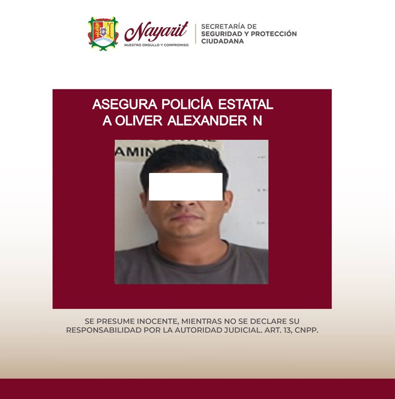 2.- Oliver Alexander “N” “N”, de 24 años, en el fraccionamiento Villas del Roble de Tepic, asegurándole una bolsa de plástico conteniendo en el interior un vegetal verde y seco con las características propias de la marihuana.