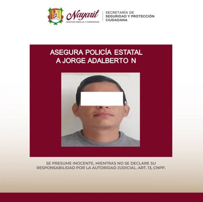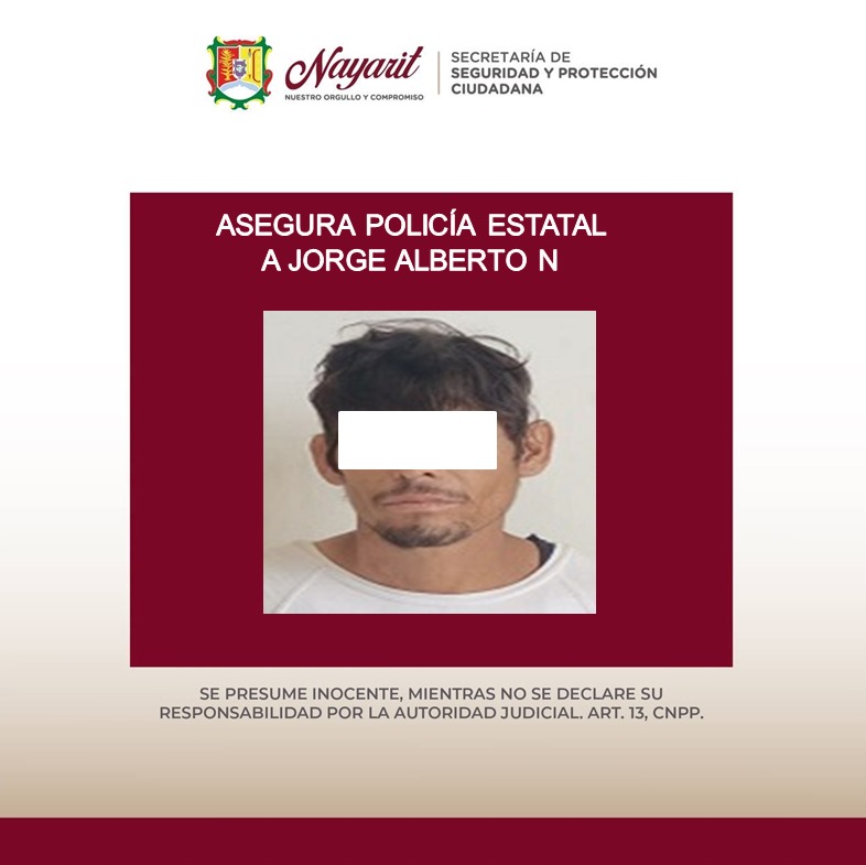 1.- Jorge Alberto “N” “N”, de 30 años, en la colonia Los Viveros de Tepic, asegurándole una bolsa de plástico conteniendo en el interior un vegetal verde y seco con las características propias de la marihuana.