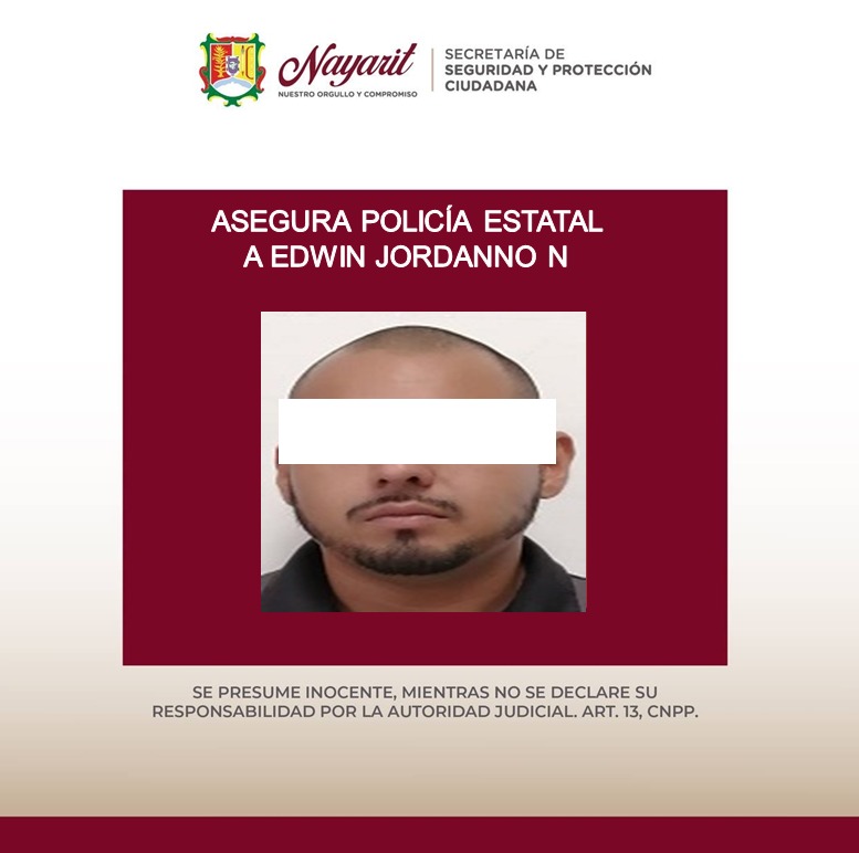 1.- Edwin Jordanno “N” “N”, de 34 años, en el municipio de Compostela, dando cumplimiento a la orden de aprehensión, por su presunta participación en el hecho delictuoso de violencia familiar en agravio de una persona del sexo femenino.