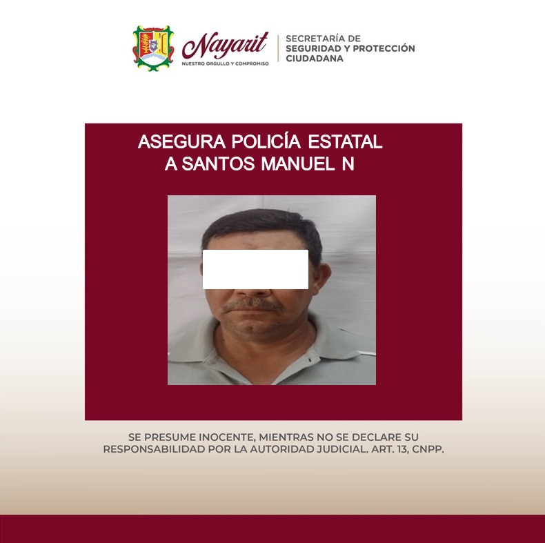 2.- Santos Manuel “N” “N”, de 46 años, en el municipio de Santiago Ixcuintla, dando cumplimiento a la orden de aprehensión por su presunta participación en el hecho delictuoso de abandono de familiares en agravio de un menor de edad de identidad reservada.