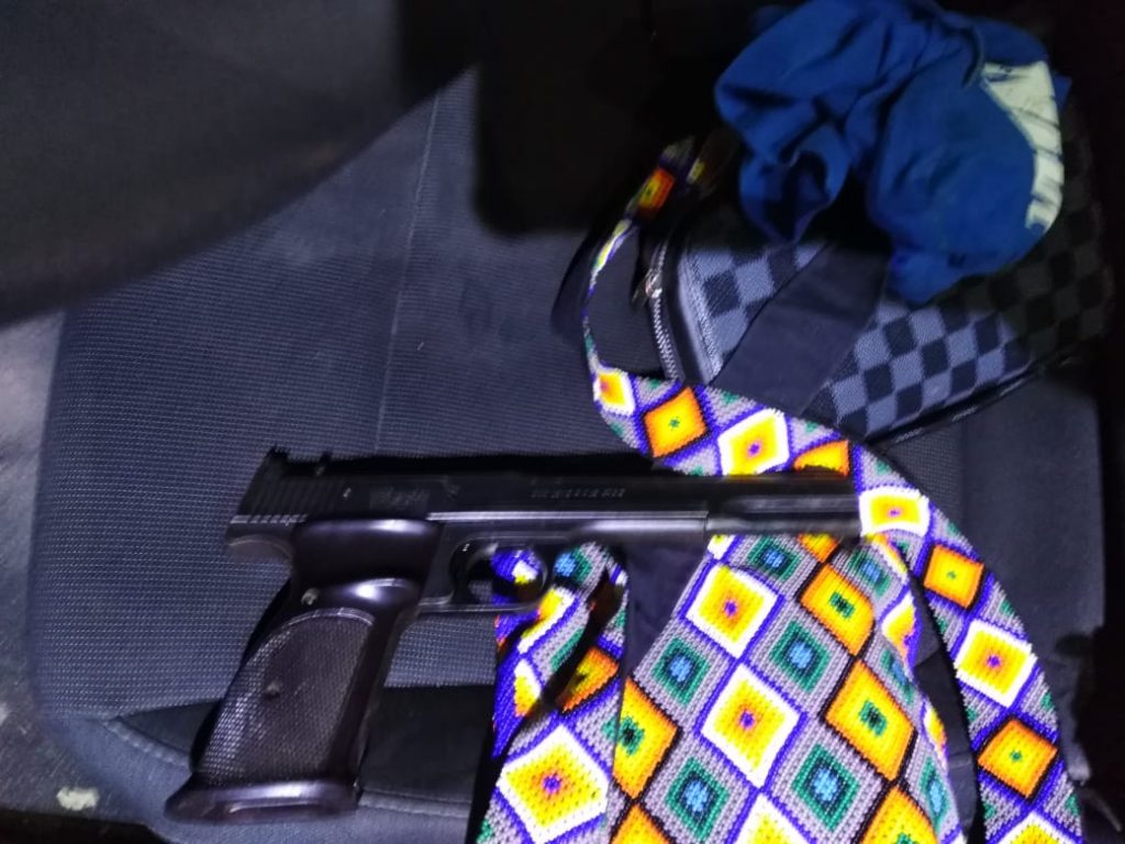 Siendo asegurado un masculino de nombre Ulises N, de 28 años, mismo que se encontraba aparentemente en estado de ebriedad, identificando a la vista al interior del vehículo un arma de fuego tipo escuadra, calibre.22 milímetros, con ocho (8) cartuchos útiles al calibre y un vehículo en color negro de la marca conocida como Kia, sub marca Rio, modelo 2019.