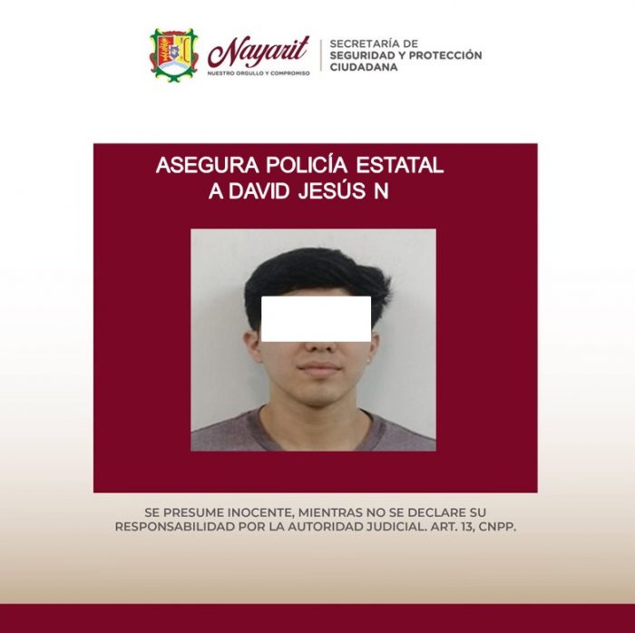 2.- David Jesús “N” “N”, de 20 años, en la colonia Caja de Agua, asegurándole una bolsa de plástico conteniendo en el interior un vegetal verde y seco con las características propias de la marihuana.