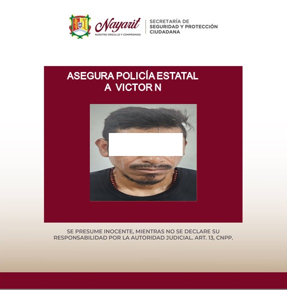 3.- Victor “N” “N”, de 38 años, en la colonia 2 de agosto de Tepic, asegurándole una bolsa de plástico conteniendo en el interior un vegetal verde y seco con las características propias de la marihuana.