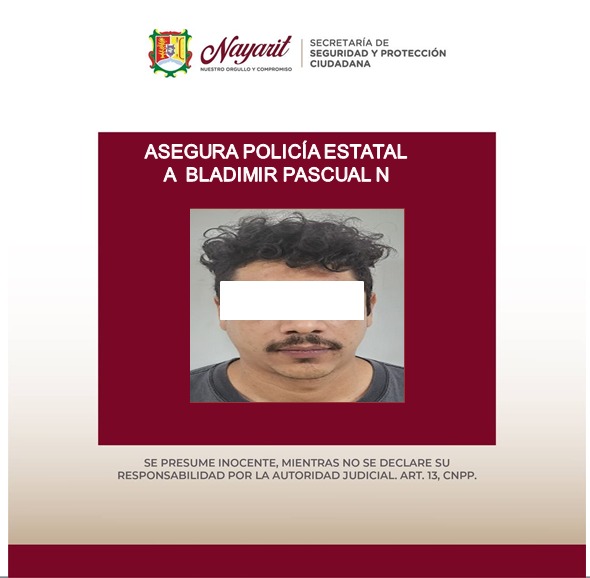 1.- Bladimir Pascual “N” “N”, de 26 años, en la colonia Prieto Crispin de Tepic, asegurándole una bolsa de plástico conteniendo en el interior un vegetal verde y seco con las características propias de la marihuana.