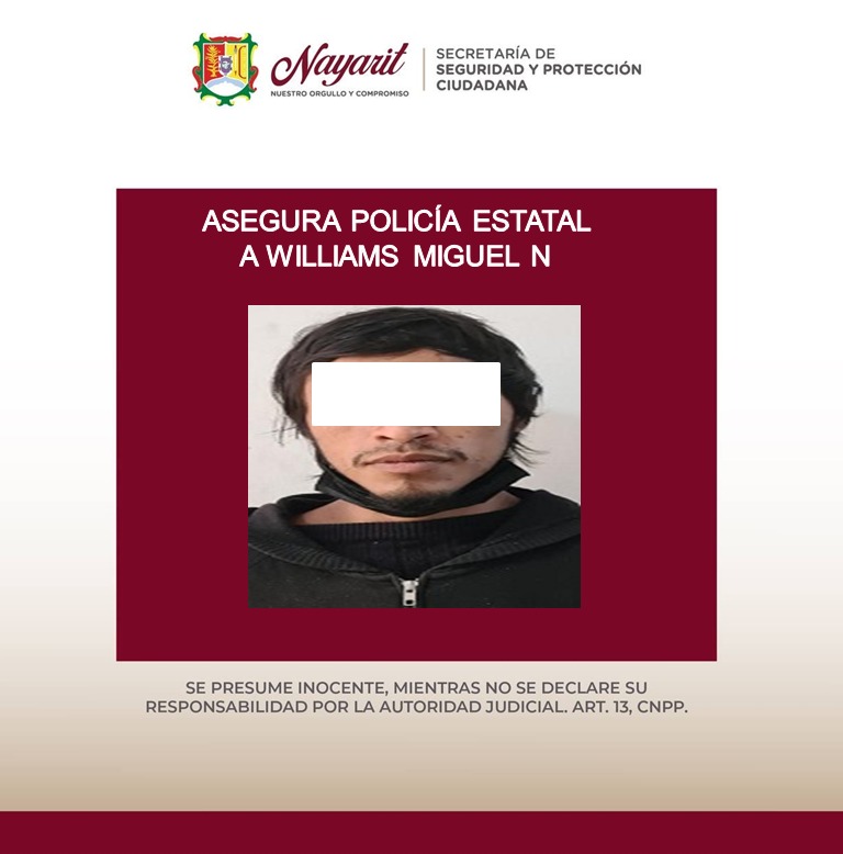 2.- Williams Miguel “N” “N”, de 24 años, en la colonia Los Fresnos Poniente de Tepic, asegurándole una bolsa de plástico conteniendo en el interior un vegetal verde y seco con las características propias de la marihuana.