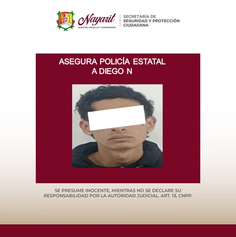 1.- Diego “N” “N”, de 23 años, en la colonia Chapultepec de Tepic, asegurándole una bolsa de plástico conteniendo en su interior una sustancia cristalina y granulada con las características propias de la droga conocida como cristal.