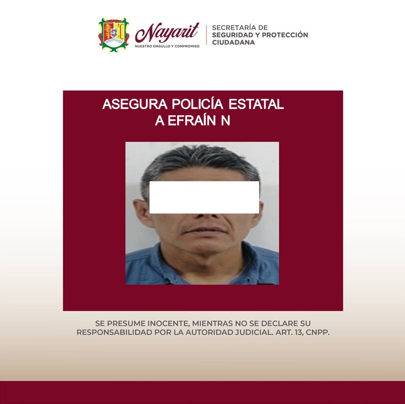 2.- Efraín “N” “N”, de 47 años, en la colonia Lagos del Country de Tepic, asegurándole una bolsa de plástico conteniendo en su interior una sustancia cristalina y granulada con las características propias de la droga conocida como cristal.