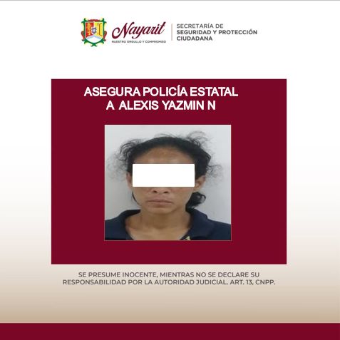 8.- Alexis Yazmin “N” “N”, de 27 años, en la Zona Centro de Tepic, asegurándole una bolsa de plástico transparente tipo ziploc, conteniendo en su interior una sustancia cristalina y granulada con las características propias de la droga conocida como cristal.