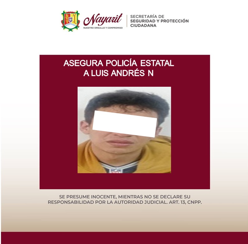 2.- Luis Andrés “N” “N”, de 23 años, en la zona centro de Tepic, asegurándole una bolsa de plástico conteniendo en su interior una sustancia cristalina y granulada con las características propias de la droga conocida como cristal.