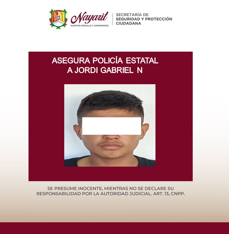3.- Jordi Gabriel “N” “N”, de 18 años, en la colonia Prieto Crispín de Tepic, asegurándole una bolsa de plástico conteniendo en su interior una sustancia cristalina y granulada con las características propias de la droga conocida como cristal.