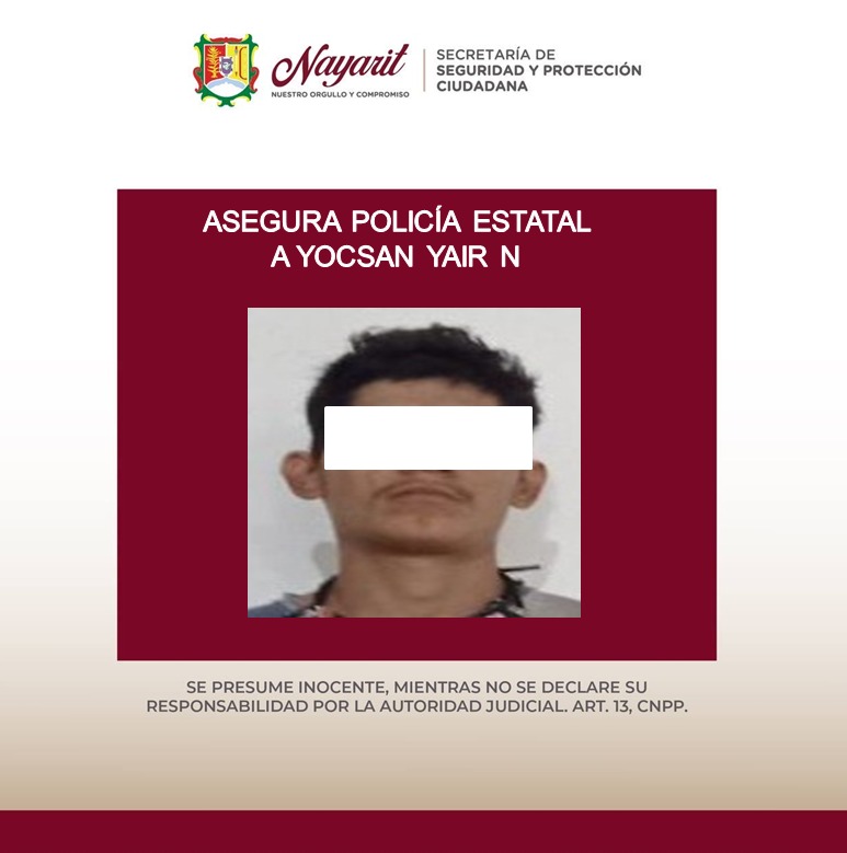 2.-Yocsan Yair “N” “N”, de 23 años, en el municipio de Compostela, por su presunta participación en el hecho delictuoso de robo, asegurándole un vehículo tipo camión de la marca Continental, con logos de la empresa Corona.