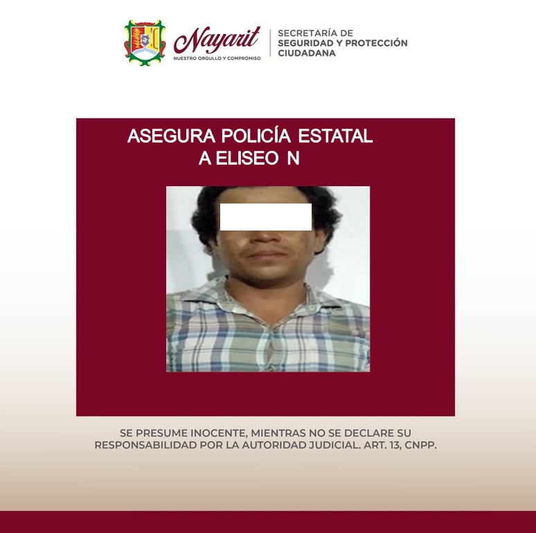 1.- Eliseo “N” “N”, de 24 años, en la localidad de Nuevo Nayarit, municipio de Bahía de Banderas, dando cumplimiento a la orden de aprehensión por su presunta participación en el hecho delictuoso de violencia familiar en agravio de una persona del sexo femenino.