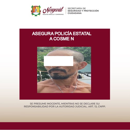 1.- Cosme “N” “N”, de 45 años, en la localidad de Bucearías municipio de Bahía de Banderas, dando cumplimiento a la orden de aprehensión por su presunta participación en el hecho delictuoso de lesiones calificadas.