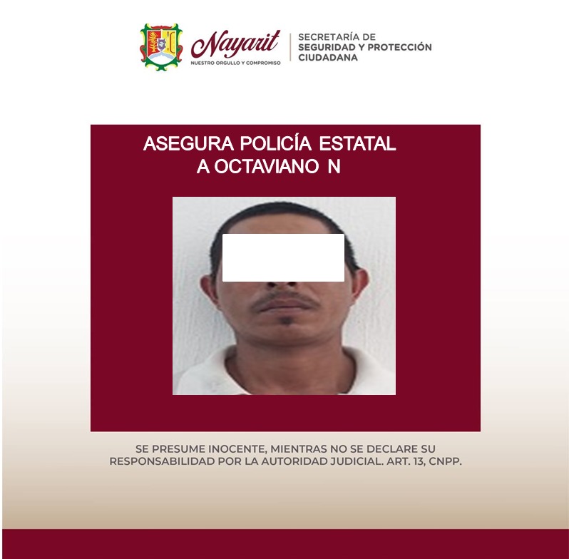 1.- Octaviano “N” “N”, de 38 años, en el municipio de Bahía de Banderas, por su presunta participación en el hecho delictuoso de amenazas, en agravio de una persona de sexo masculino.