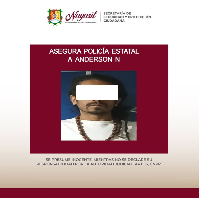 1.- Anderson “N” “N”, de 35 años, en el municipio de Bahía de Banderas, por su presunta participación en el hecho delictuoso de tener en posesión un vehículo con reporte de robo, asegurándole una motocicleta en color dorado con negro.