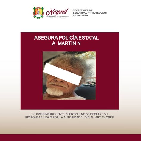 La Secretaría de Seguridad y Protección Ciudadana aseguró a una (1) persona, esto durante recorridos de vigilancia y prevención al delito implementados por elementos de la Policía Estatal en el municipio Compostela.