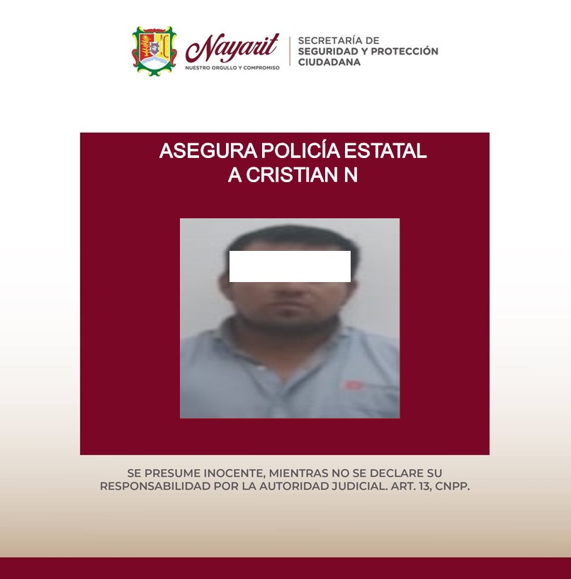 1.- Cristian “N” “N”, de 30 años, en la localidad de Monteón, Municipio de Compostela, por presunta participación en el hecho delictuoso de lesiones y daño a las cosas.